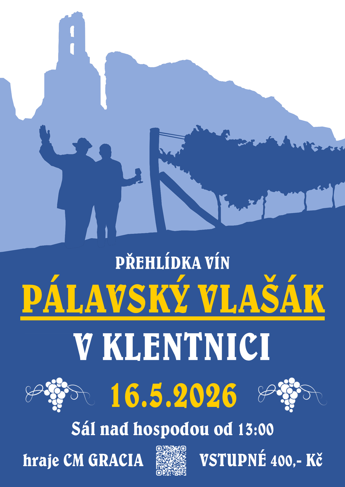 Akce začíná v sobotu 16. 5. 2026 od 13.00 hod. v Klentnici, uprostřed Pálavy, v sále nad obecní hospodou.